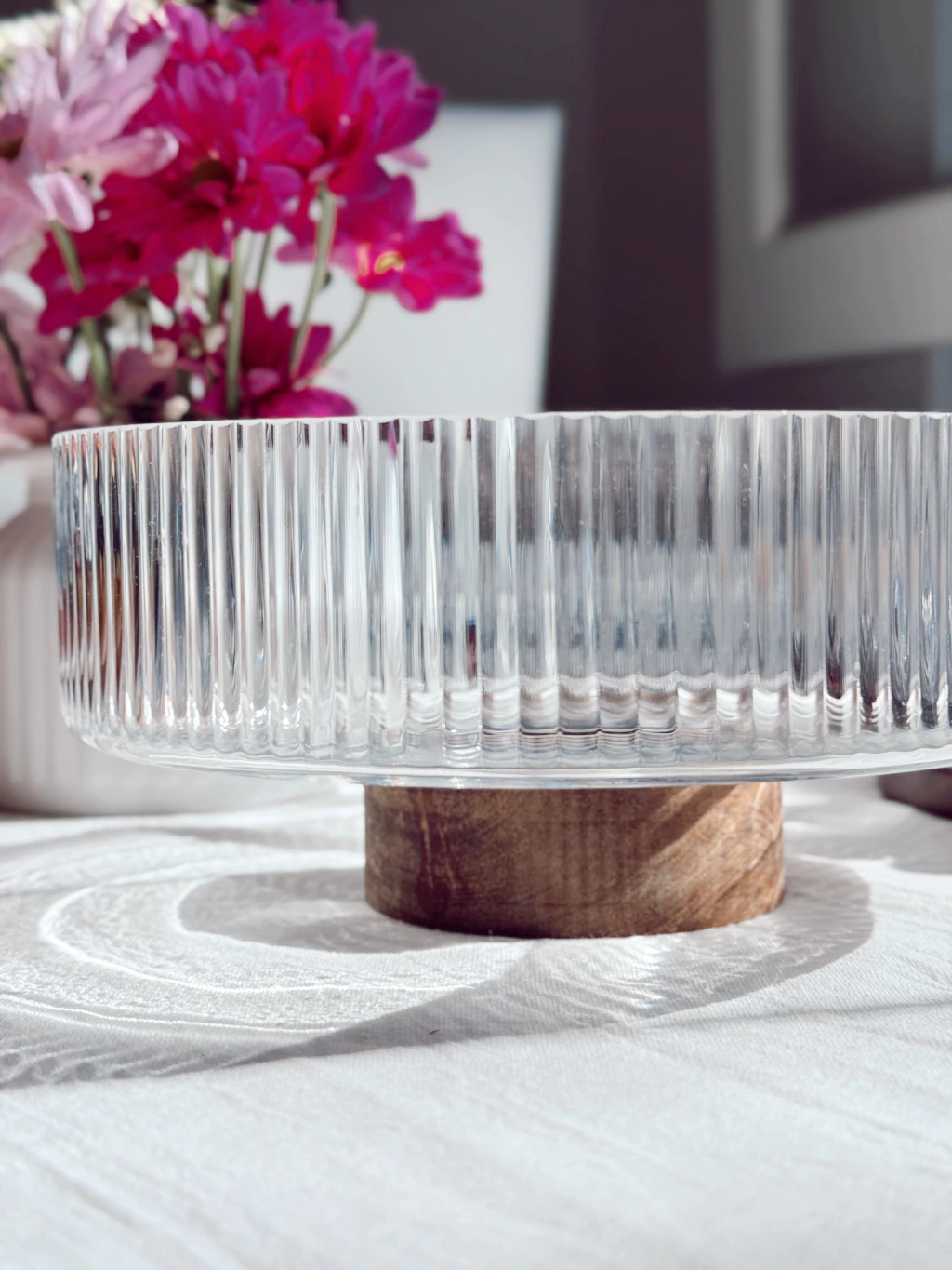 Material: Fuente de vidrio, con base desmontable de madera de acacia.