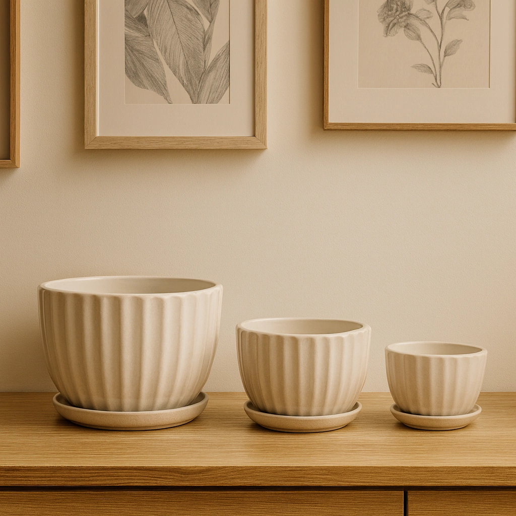 Descubrí el Set de 3 Macetas Blancas, el complemento ideal para darle un toque de elegancia y frescura a cualquier espacio de tu hogar u oficina. Este set incluye macetas de tres tamaños diferentes, pensadas para adaptarse a diversas plantas y estilos de decoración.