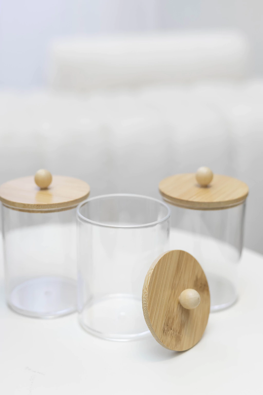 Descubrí la solución perfecta para mantener tu espacio ordenado y con estilo con nuestro Set de 4 Organizadores de Acrílico con Tapa de Bambú.